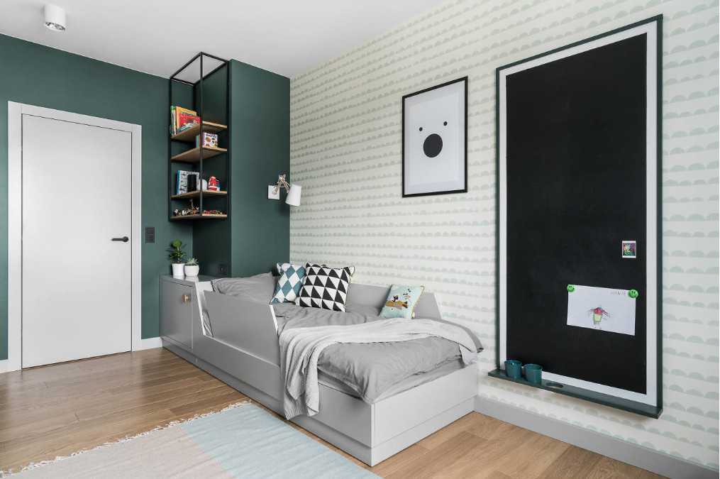 ▲兒童房延伸了對(duì)森林綠的使用,并在地毯、墻面、靠枕的物品選擇上使用了更為跳躍、明亮的淺綠,為孩子帶來專屬的活力與趣味。