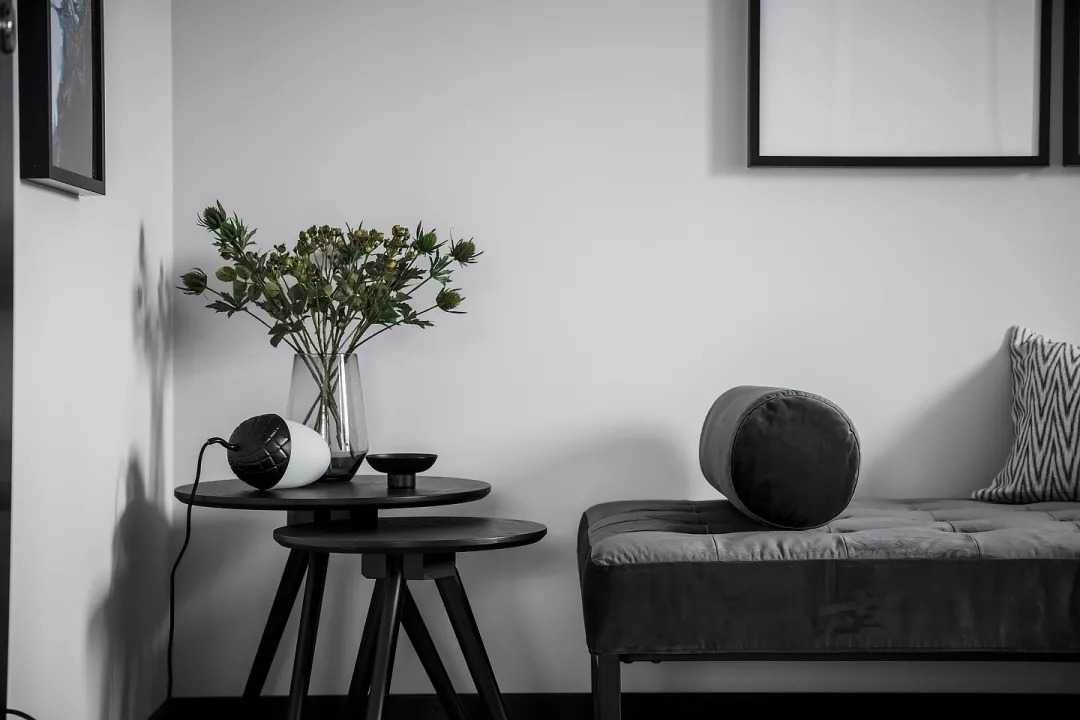 “態(tài)度的原始工業(yè)感覺”是設(shè)計(jì)的方向。顏色沿著公寓的堅(jiān)固裝飾,柔和的灰度作為藍(lán)色元素的基礎(chǔ)。為了不讓室內(nèi)感到寒冷和寒冷,采用了各種天然材料,其中包括:黑色木材和黑色混凝土,柔軟元素,如天鵝絨和家具和照明中的圓形有機(jī)形。![]()