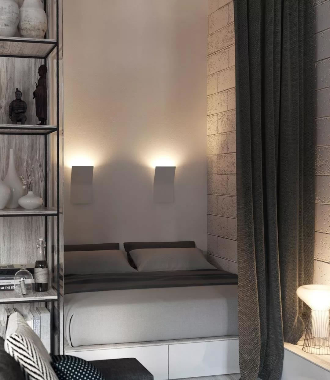 設(shè)計(jì)師在這43平方米的小面積空間里,采用簡(jiǎn)約的幾何形狀、豐富的紋理、混泥土,鋼絲和木材。以一種看起來(lái)新鮮和精致的方式,將這些廉價(jià)的材料應(yīng)用到極致,整套設(shè)計(jì)非常出色。