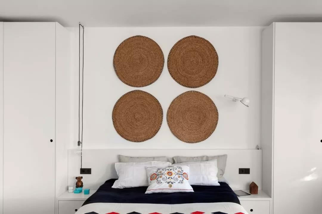 大部分必要的存儲(chǔ)空間都裝在簡(jiǎn)約的白色抽屜中,帶有柔滑的白色飾面,看起來(lái)干凈利落,圓形裝飾與立方體形狀的家具形成鮮明的對(duì)比,最重要的是,整個(gè)公寓的重要裝飾細(xì)節(jié)都沒有任何重點(diǎn)。