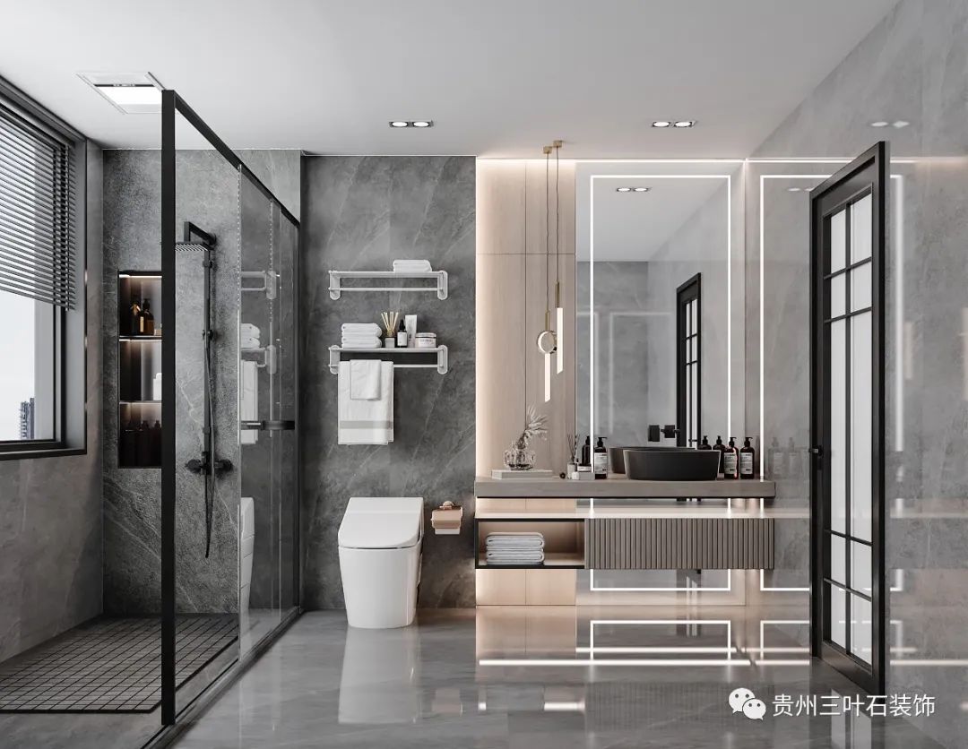 11、衛(wèi)生間空間足夠的話一定要做干濕分離,最好選擇玻璃淋浴房設(shè)計(jì),為了安全起見需要貼上防爆膜。