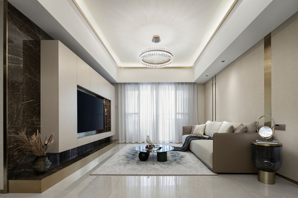通過大落地玻璃和夢幻簾充分利用自然光線的效果。此外,柔和且溫暖的照明也是奶油風的特點,如柔和的燈光以及暖色調(diào)墻板,再搭配布藝制品,基本都有軟軟的絨毛,觸感舒適,休閑感十足~